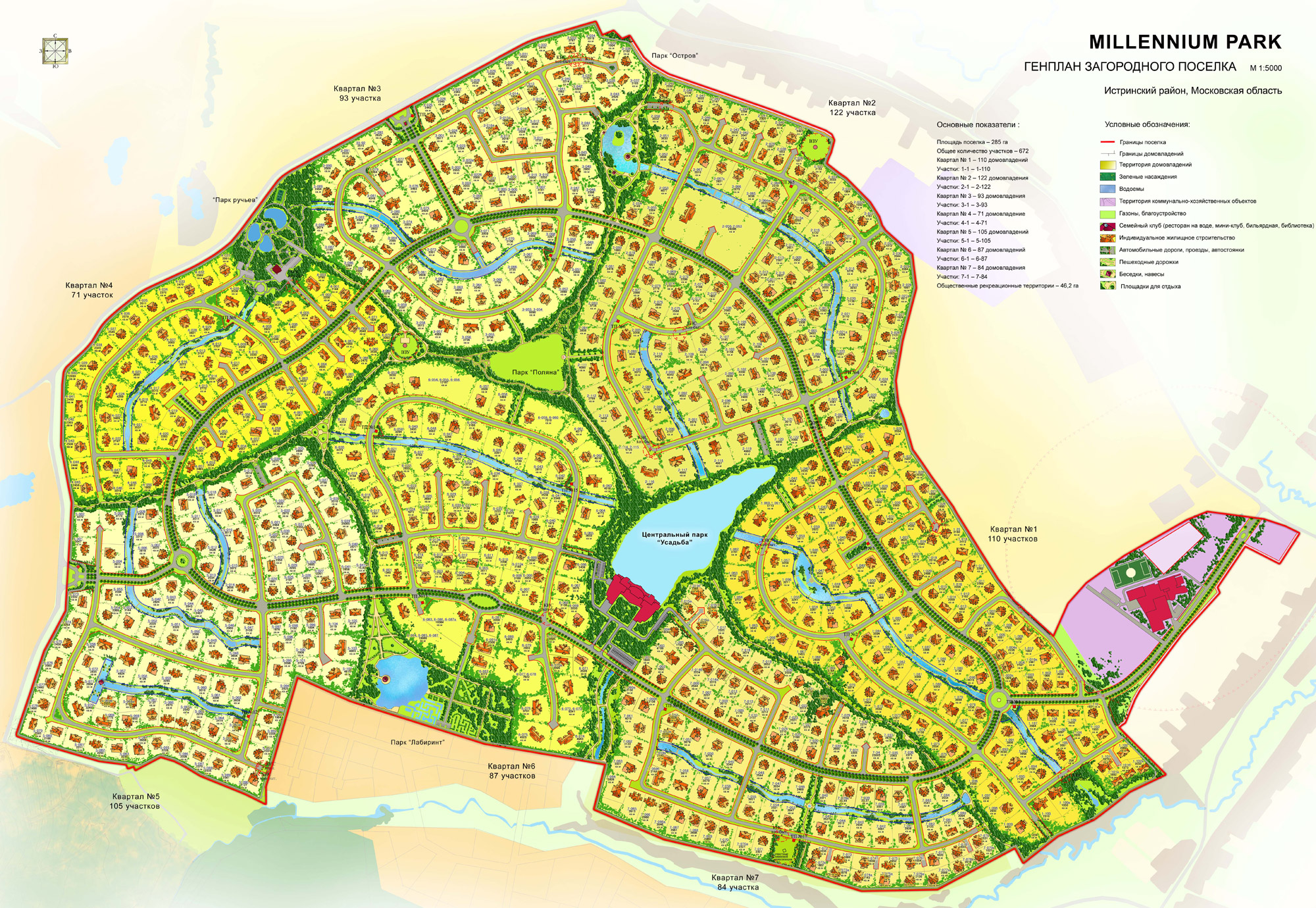 Миллениум Парк - это уникальный элитный коттеджный поселок с водными каналами и парками в 19 км от МКАД по Новорижскому шоссе. Площадь 285 гектаров разделена на семь кварталов, объединенных широким бульварным кольцом с двумя автомобильными дорогами и тремя линиями газонов. Это придает поселку ощущение простора и обеспечивает удобный подъезд к каждому дому. Территория поселка разбита на 670 участков площадью от 0,14 до 2 га.
